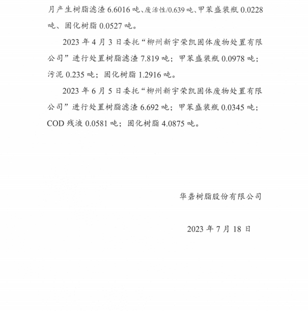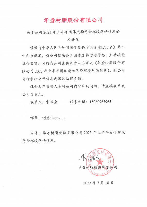 关于公司2023年上半年固体废物污染环境防治信息的公开信